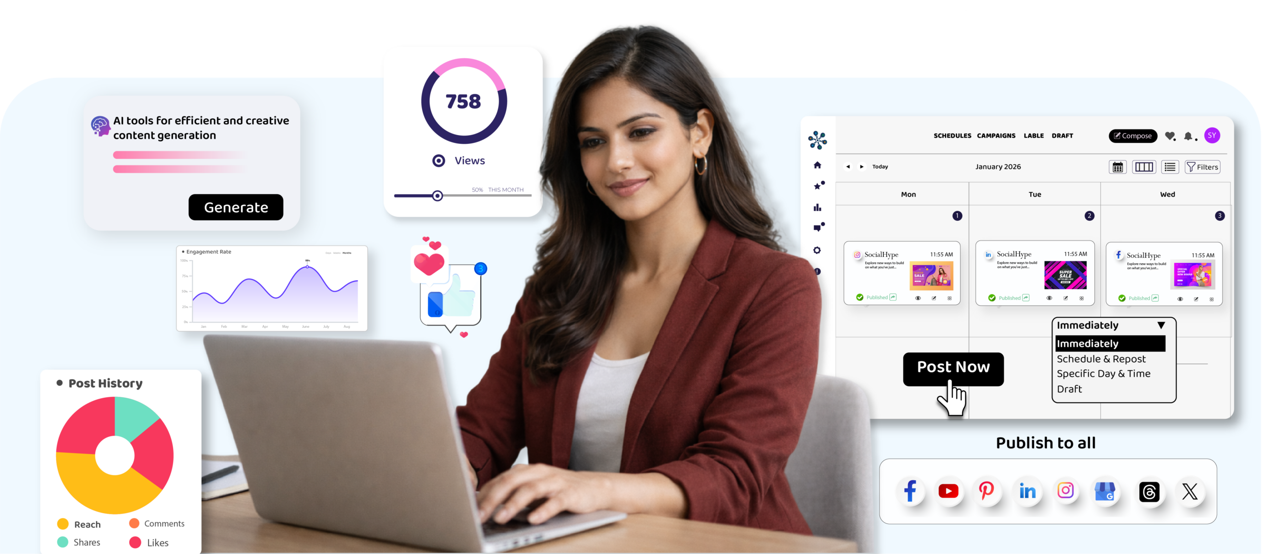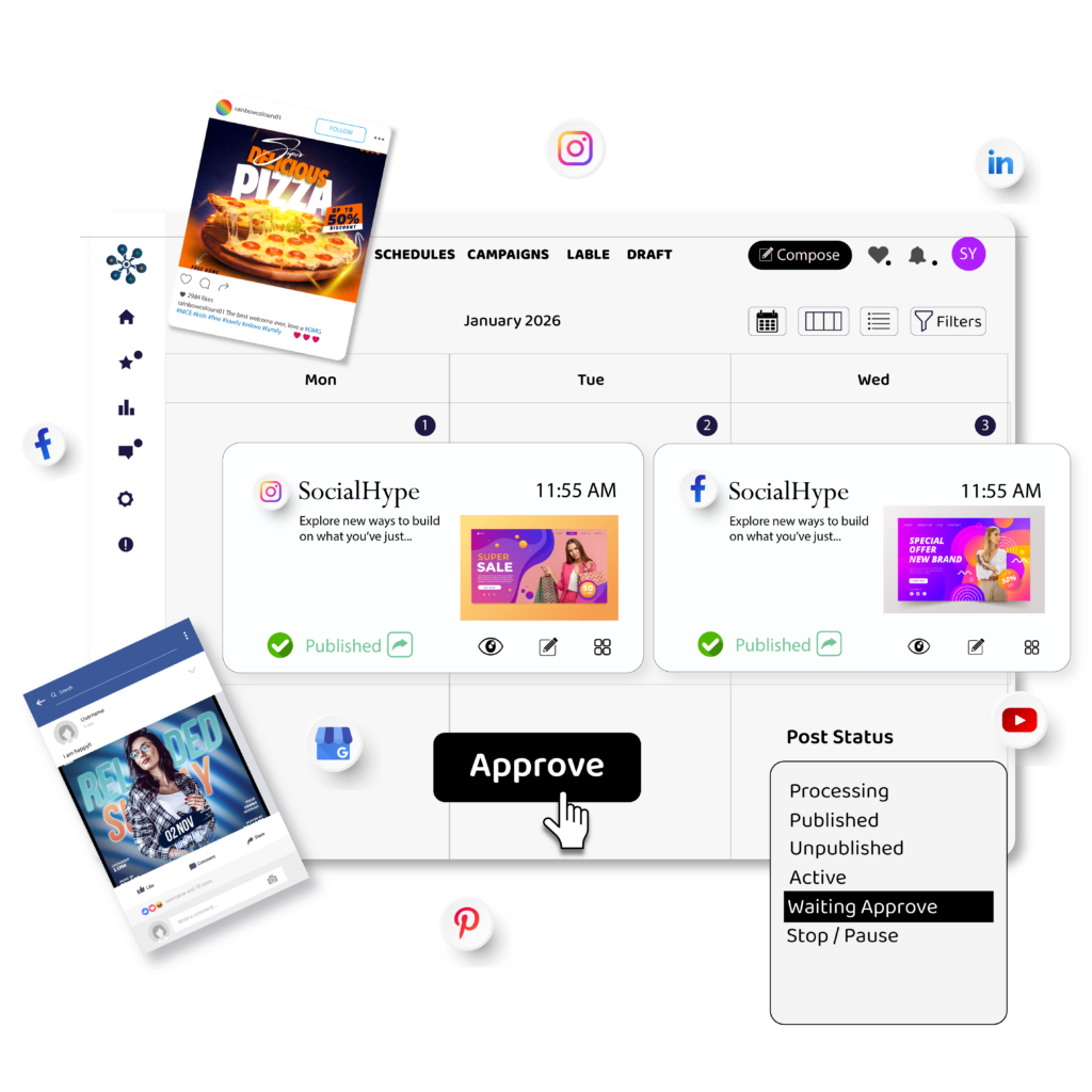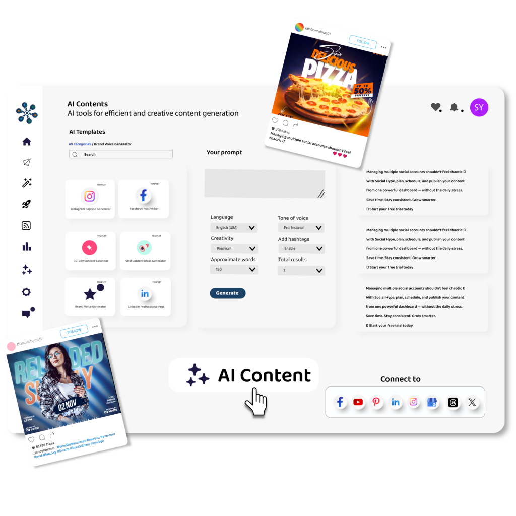 Turn your content strategy into an automated growth machine. Social Hype’s AI Publishing Automation generates, schedules, and publishes posts without manual effort — intelligently and consistently.